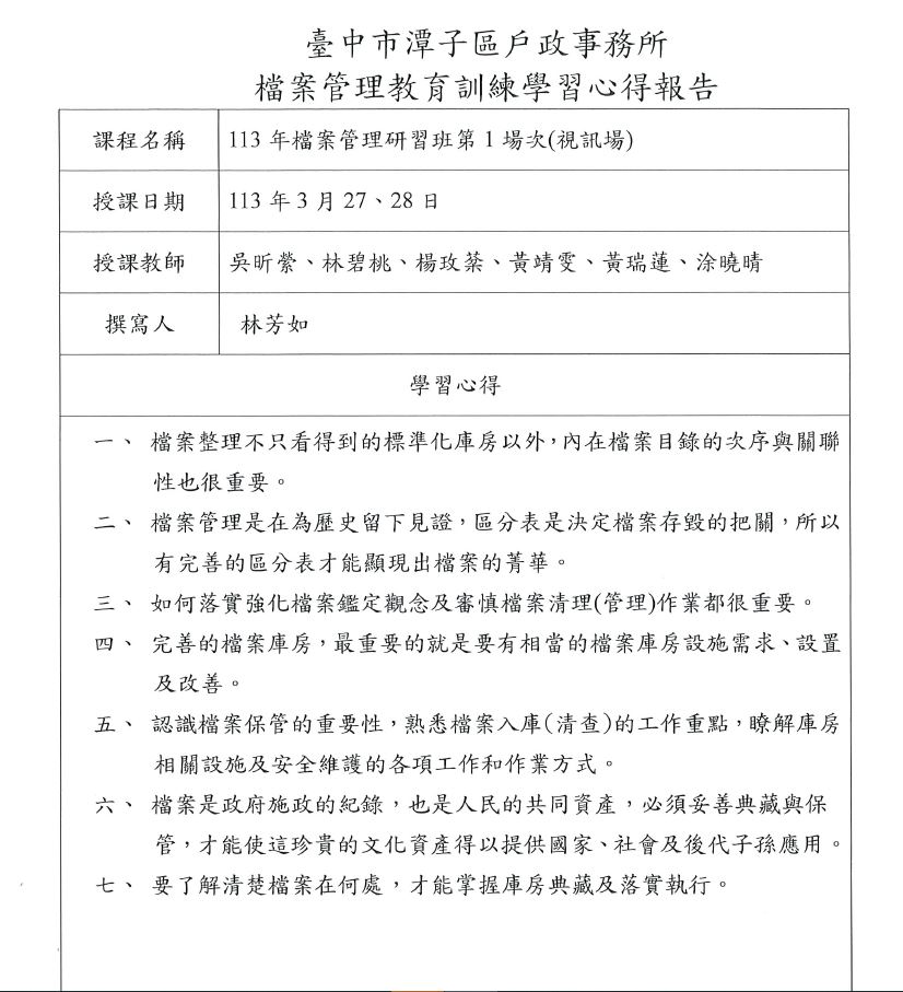113年3月27日、28日檔案管理研習班(視訊課程)