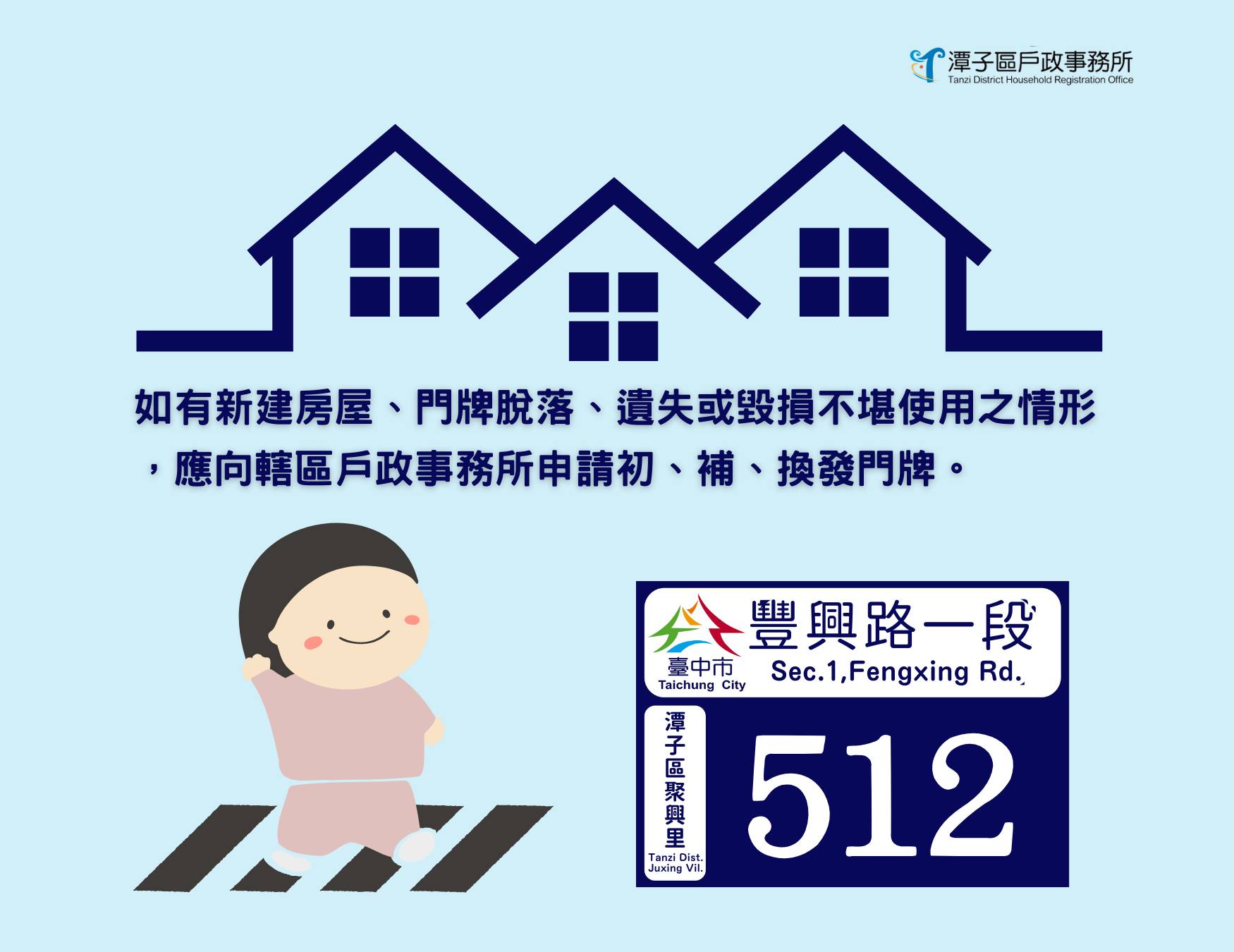 |戶政宣導 |新建房屋或門牌脫落、遺失或毀損不堪使用之情形請向轄區戶政事務所申請初、補、換發門牌