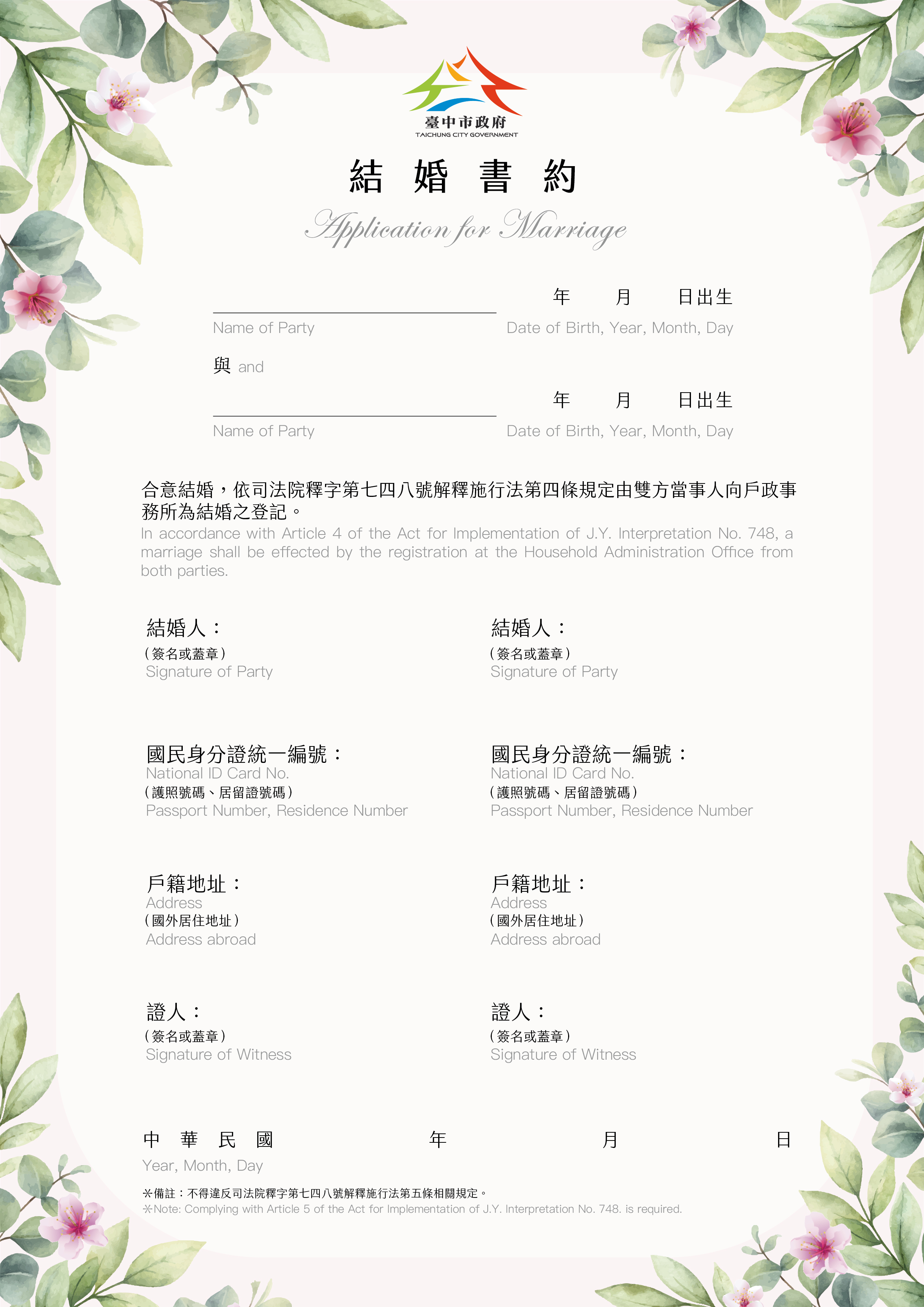 |戶政宣導 |臺中市專屬結婚書約,歡迎下載使用